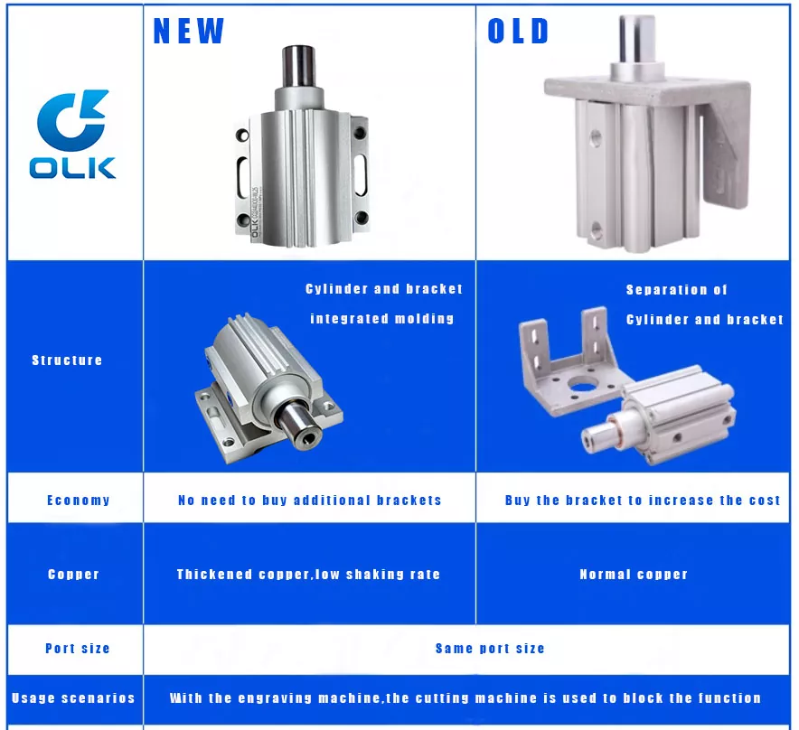 OLK PNEUMATIC має два типи циліндрів для задоволення різних вимог сцени. Щоб отримати детальну інформацію, зв’яжіться з відділом продажів OLK.