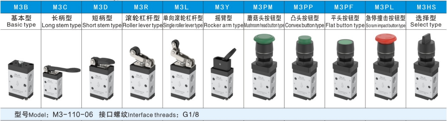 OULEIKAI M3 Series AirTAC-тип 3/2 Шлях Механічний клапан має 2 робочих станів та 3 вибору шляху. складальні лінії та упаковки.