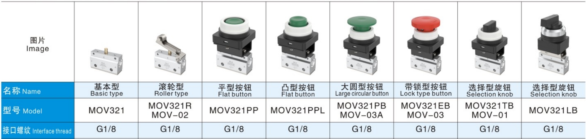 MOV321 Серія Механічний кнопковий клапан клапана 3 -х загальних параметрів