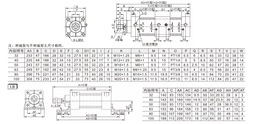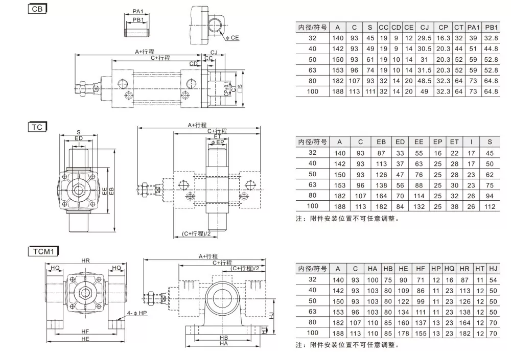 · Різні специфікації циліндрів і аксесуари для монтажу доступні для вибору клієнтів.