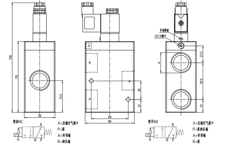Розміри різьби (P, A, R) доступні в G3/8, G1/2 та G1, з стисненим повітряним портом (X) у G1/8.